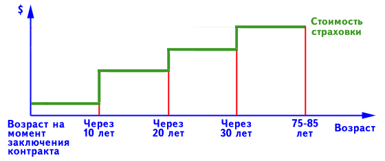 Недостатки такой программы очевидны: стоимость страховки меняется со временем и длится она только до определённого возраста. Обычно, до 75 лет, в некоторых компаниях до 85 лет.